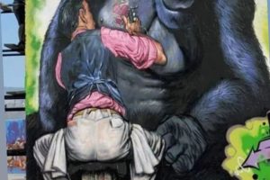 ΔΙΕΘΝΕΣ ΕΙΚΑΣΤΙΚΟΚΙΝΗΜΑ Αυτή η εικόνα δείχνει μια τοιχογραφία τέχνης του δρόμου (street art).Η τοιχογραφία απεικονίζει έναν άνδρα να κάνει τατουάζ στο στήθος...
