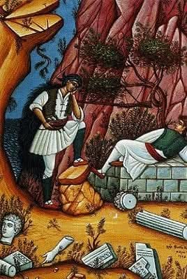 . Αναζήτησε την «ελληνικότητα», δηλαδή μία αυθεντική έκφραση, επιστρέφοντας στην ελληνική παράδοση, τόσο στο λογοτεχνικό όσο και στο ζωγραφικό του έργο. – Πηγή Βικιπαίδεια-