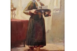 Απόστολος Γεραλής (1886-1983) – Έργο ζωγραφικής “Κοπέλα που σερβίρει” Ελληνικό έργο ζωγραφικής, λάδι σε ξύλο, 43,0 * 30,0 cm. Φέρει την υπογραφή του καλλιτέχνη...